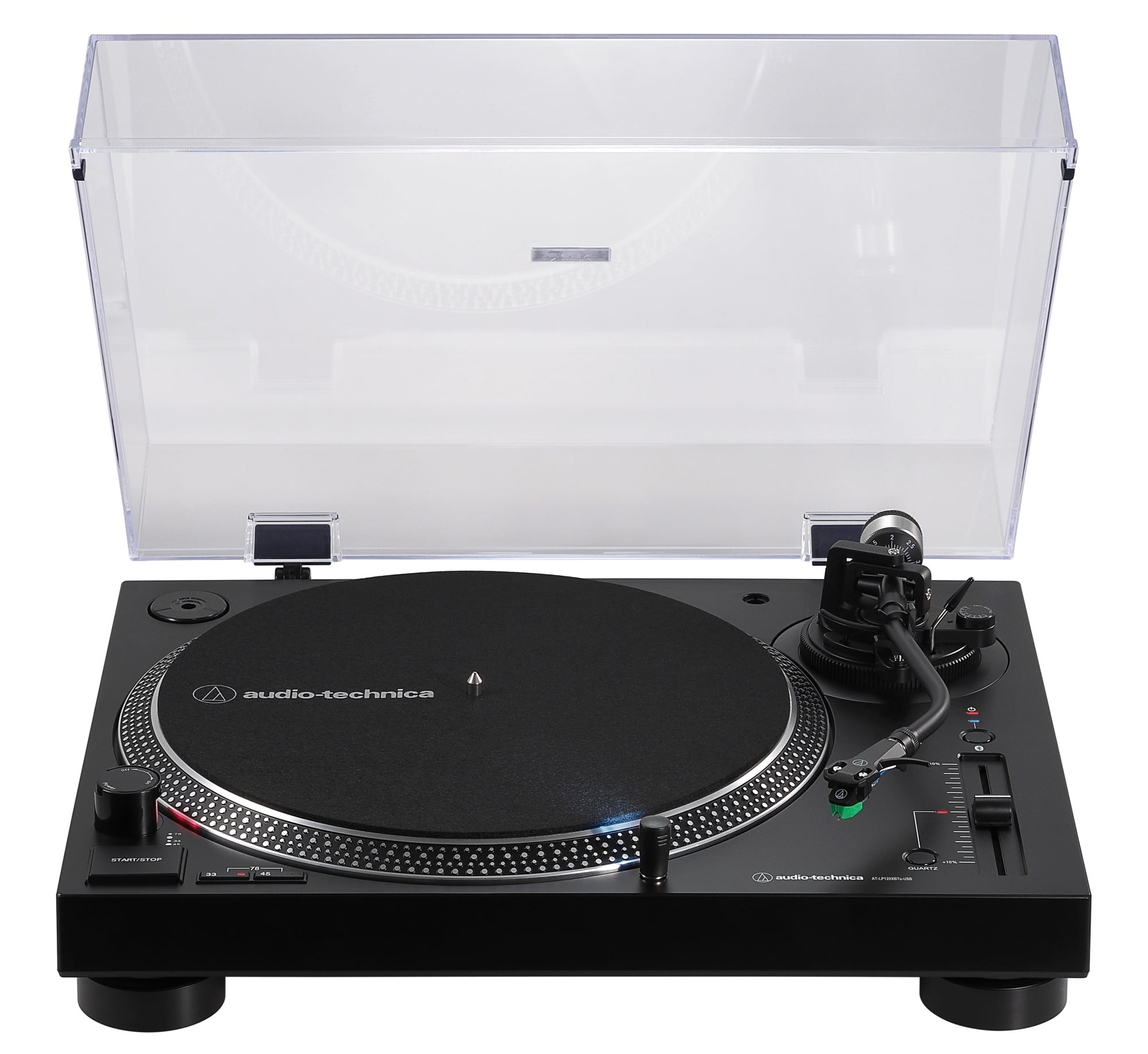 Featuring a specially designed DC servo direct-drive motor and adjustable dynamic anti-skate control, the AT-LP120XBT-USB plays 33-1/3, 45, and 78 RPM records and outputs the high-fidelity audio to the device of your choice. Use the included RCA output cable along with the built-in selectable phono preamp to connect to your home stereo or powered speakers. Use the USB cable to connect to your computer and then download the free Mac- and PC-compatible Audacity recording software, or software of your choice, to start converting your records to digital audio files. Or use the Bluetooth wireless technology to pair the turntable with wireless speakers, headphones or other devices, including those that support the high-quality Qualcomm® aptX™ audio codec.